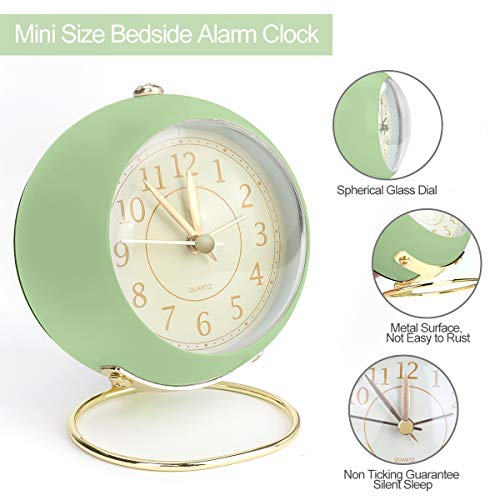Ertisa - Sveglia da comodino, mini sveglia silenziosa, senza ticchettio, con luce notturna, orologio al quarzo leggero classico per studenti/ragazzi/ragazze, alimentato a batteria (verde)
