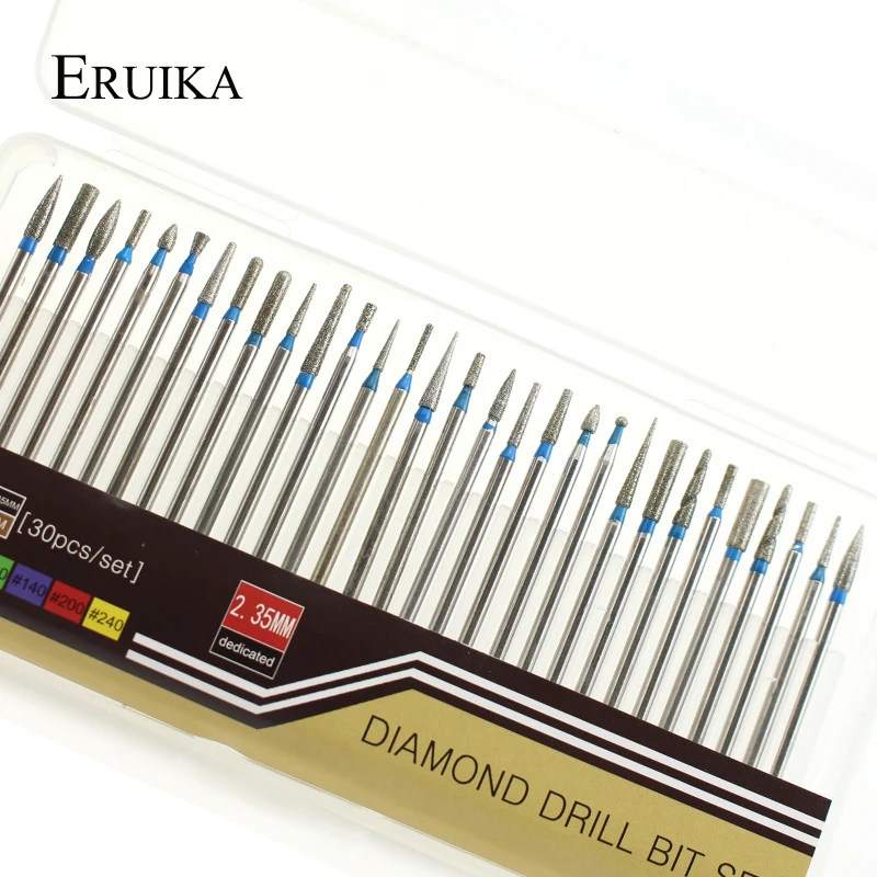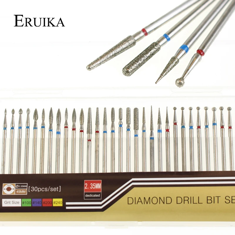 ERUIKA 30pc Diamond Nail Drill Bit Set Milling Cutter Rotary Burr Cutter Clean Files for Electric Manicure Machine Accessory