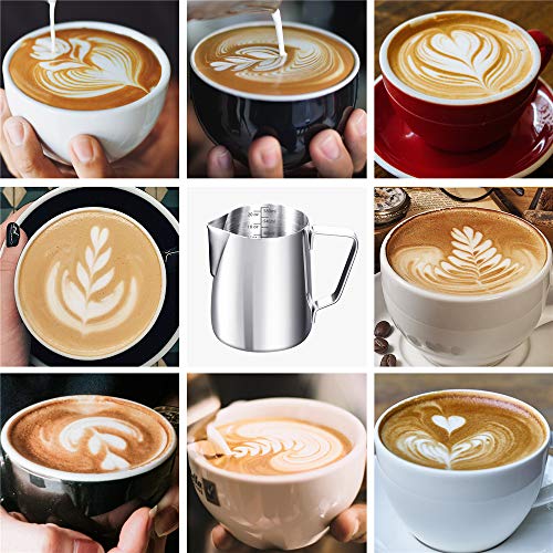 ERWEY Bricco per Latte in Acciaio Inox, Brocca in Schiuma di Latte Cappuccino 350ml/12oz, Lattiera Perfetto per Cappuccino Barista Espresso