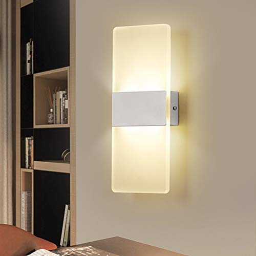 ERWEY LED Lampada da Parete Interno 6W Bianco Caldo, Moderno Applique da Parete Interni, Lampada a Muro in Acrilico per Soggiorno Camera da Letto Corridoio Scale Luce Notturna