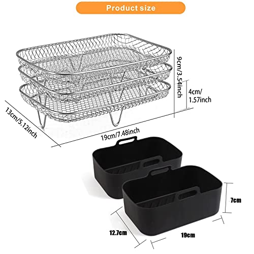 Facile da pulire: più igienico, un rivestimento in silicone per friggitrice ir è così morbido e flessibile, basta capovolgerlo al rovescio e lavarlo con acqua tiepida. Scaffale impilabile a 3 strati realizzato in acciaio inossidabile 304 per uso alimentare, più comodo da pulire e meno sporco residuo, non preoccuparti di sostanze chimiche pericolose, goditi pasti divertenti e sani ogni volta. Facile da pulire in lavastoviglie.