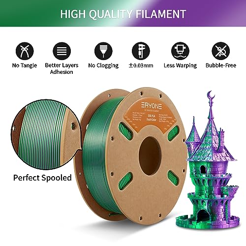 ERYONE Filamento PLA bicolore 1,75 mm, filamento per stampante 3D, bobina da 1 kg, +/- 0,03 mm, viola e verde