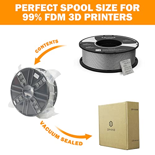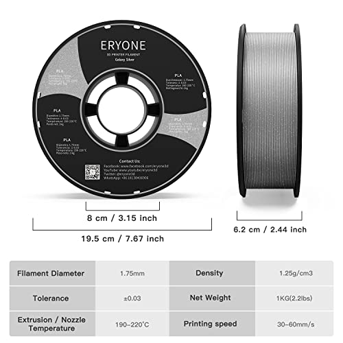 ERYONE Filamento PLA Glitter 1,75 mm Filamento stampante 3D PLA, Precisione Dimensionale +/- 0.05mm, Bobina da 1KG (2.2 LBS) Argento