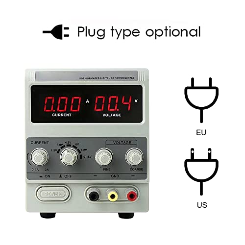 ERYUE Alimentazione CC,Alimentatore CC da banco Variabile 15V 2A Display digitale Alimentatore regolato a commutazione regolabile per manutenzione Riparazione computer portatile del telefono cellulare
