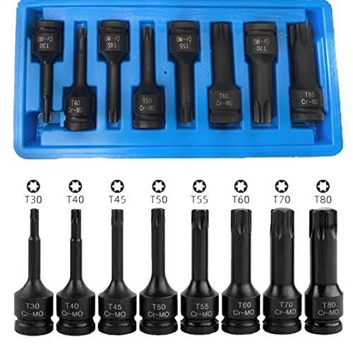 ERYUE Set di Chiavi a Bussola Torx Star Bit,1/2in Drive Impact Torx Star Bit Socket Set T30 T40 T45 T50 T55 T60 T70 T80