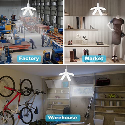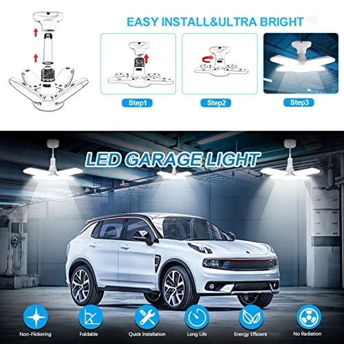ERYUE Luci LED per garage,Luci a LED per garage- Soffitto per garage dimmerabile, 6000LM 6500K E27/B22 Plafoniere a LED per garage con 4 pannelli regolabili per garage, officina, interno, esterno, off