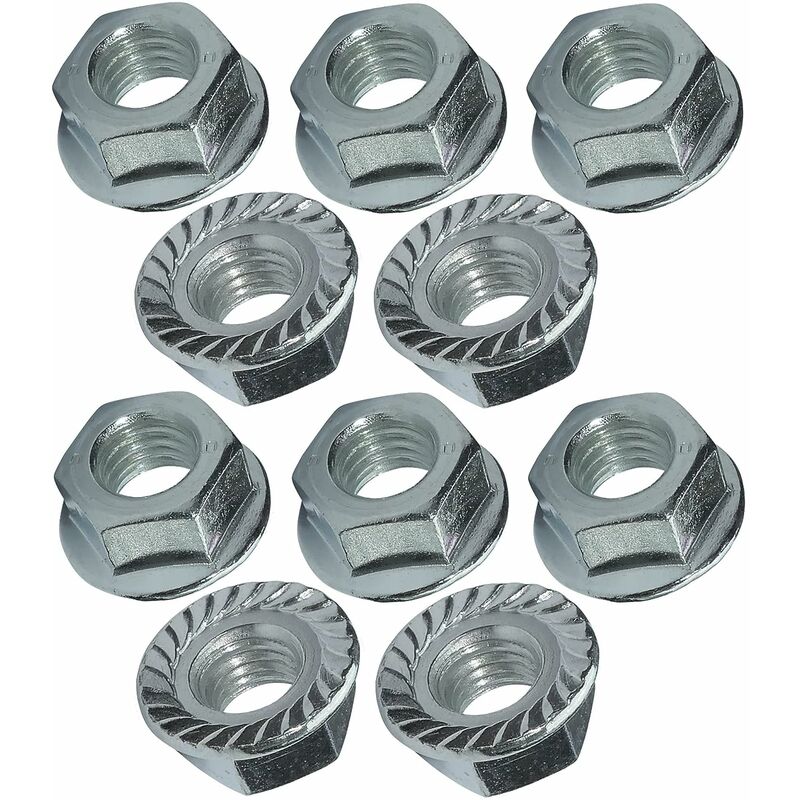 Confezione da 10 dadi esagonali con collare dentellato M8. Un pezzo sicuro ed efficiente di bullone e asta che puoi facilmente stringere o allentare con una chiave a tubo, una chiave aperta o una chiave regolabile. Il collare dentellato è progettato per evitare il possibile allentamento della vite, in altre parole è un sistema di bloccaggio. Indubbiamente una parte molto utilizzata e preferita dagli installatori per attività di fissaggio - mezzi di trasporto, macchine agricole Dimensioni: Dimensione del dado: per bullone M8. Altezza totale del dado: 8 mm. Altezza dado: 6 mm. Larghezza esterna del dado: 13 mm. Diametro esterno collare: 17 mm. Unità di peso: 6,218 g. BACCANO 6923. Materiale: acciaio al carbonio. Coperchio: zincato. Colore: argento Grazie alla sua forma esagonale avrai una perfetta impugnatura della chiave per ottenere il risultato atteso. È un dispositivo di fissaggio indispensabile di cui hai bisogno per svolgere le tue attività professionali, per creare un