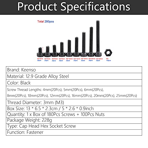 Vite a Esagono Incassato a Testa Cilindrica 280Pcs Viti a Testa Svasata con Esagono Incassato Bullone a Testa Piatta, Set di Assortimento di Dispositivi di Fissaggio per Macchine in Acciaio