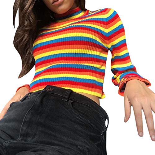 ESAILQ Blusa Donna Camicetta Camicia a Righe T-Shirt Autunno e Inverno Manica Lunga Maglietta con Bluse Maglie Tops Dolcevita Lavorato a Maglia Sottile a Righe Colorate