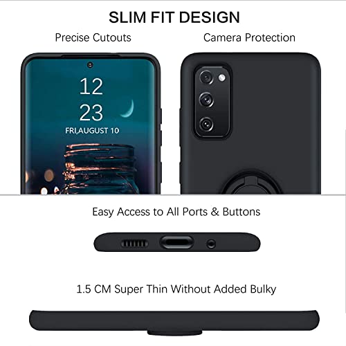 Esakycn Cover per Samsung S21 FE, Custodia Silicone con 2 Pellicola Temperata Protettiva & 2 Pellicola Fotocamera, Magnetica Anello Ring Supporto Silicone Case per Samsung Galaxy S21 FE 6,4", nero