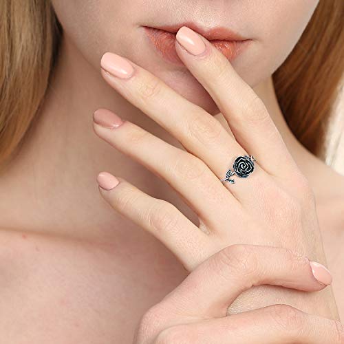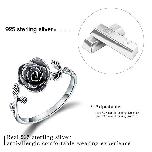 Esberry S925 - Anello in argento Sterling 925, a forma di rosa, regolabile, per donne e ragazze e Argento, 6.75, colore: Argento anticato., cod. ESD