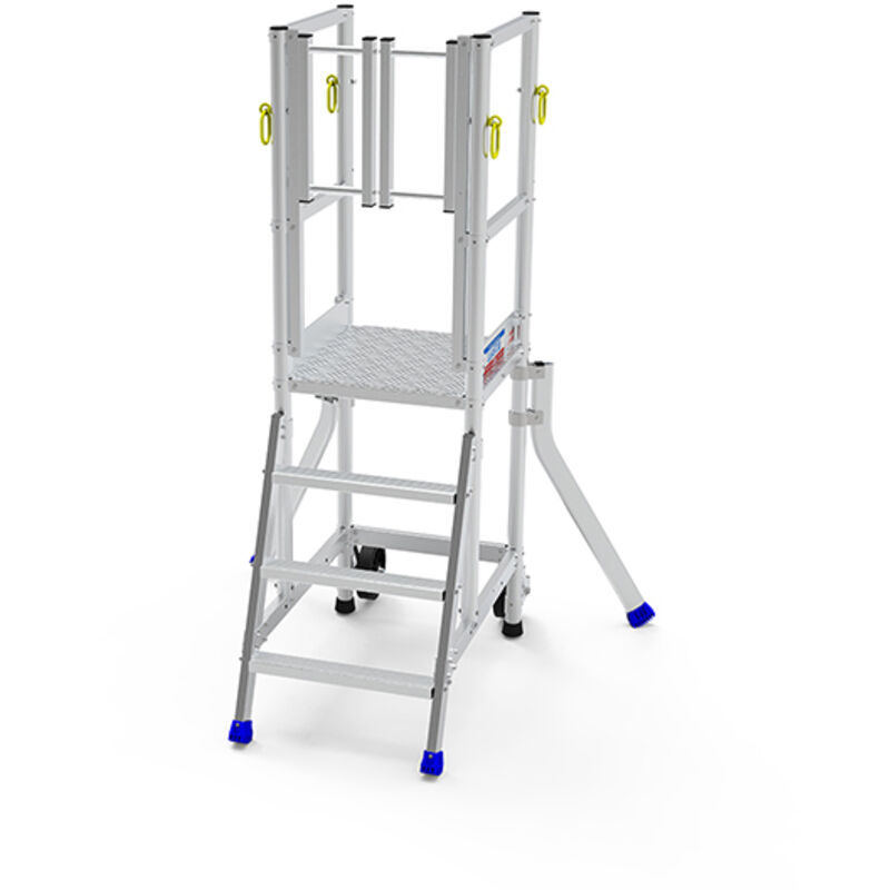 USO - Scala con piattaforma per interventi vicini al muro grazie ai piedi verticali. - Ideale per la manutenzione o la gestione degli scaffali: base non svasata per essere il pià vicino possibile ai macchinari. - Attrezzatura molte apprezzata dai professionisti dei settori dell'energia: installazione, riparazione e manutenzione. - Per lavori edili, costruzione e finiture, cemento armato... - Scala dotata di un anello di sollevamento. CONSIGLI - Conforme alla norma francese 2004-924 se l'ambiente non presenta un rischio di caduta. - Obbligo di entrata e di uscita tramite un accesso sicuro: da usare contro un muro, un soppalco, sopra un macchinario, ecc. CARATTERISTICHE - Scala ultra sicura grazie al cancelletto frontale a spinta. - Corrimani laterali per una salita e una discesa sicura. - 2 stabilizzatori girevoli di serie per posizionare la scala precisamente. - Gradini profondi 80mm per limitare i rischi di caduta. - Ruote non portanti Ø200mm per spostamenti facili. - Il numero di