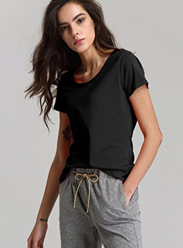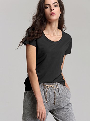 Escalier Donna Magliette Tinta Unita Camicetta a Maniche Corte Girocollo Maglia Casuale Basic T-Shirt Top Nero 4XL