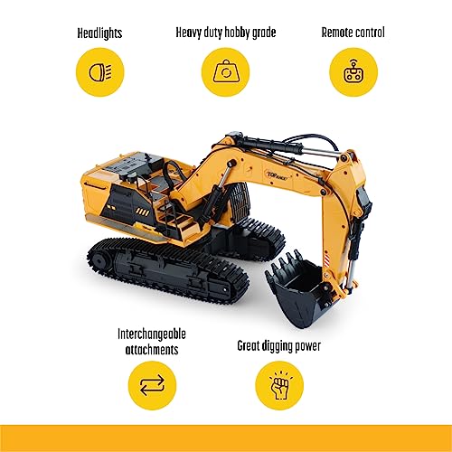 Non solo un giocattolo per bambini: il Top Race TR-211K non è un giocattolo per bambini, ma piuttosto una macchina professionale per gli hobbisti per realizzare il loro sogno di controllare un vero escavatore, il peso di questo escavatore è di circa 4kg. che ti dà un'idea di quanto sia potente questo camion,