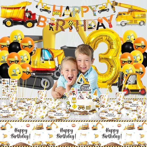 ️ Stoviglie per feste di compleanno per bambini, 3 anni, cantiere, escavatore, decorazione per compleanno dei bambini, 3 per complea