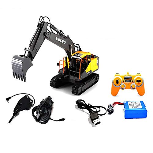 LCJD Escavatore telecomandato Completo 1/16 con luci e Suoni, 15 canali con Giocattolo per Escavatore per Ragazzi Ricaricabile con trasmettitore 2.4