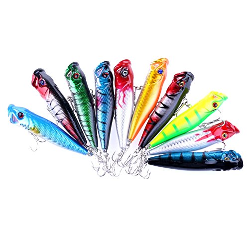 Esche Artificiali Spinning - Dealit Popper Esche da Pesca Crankbaits delle Esche Bass Ciprinidi Lure Kits Attrezzatura da Pesca Accessori (10PCS)