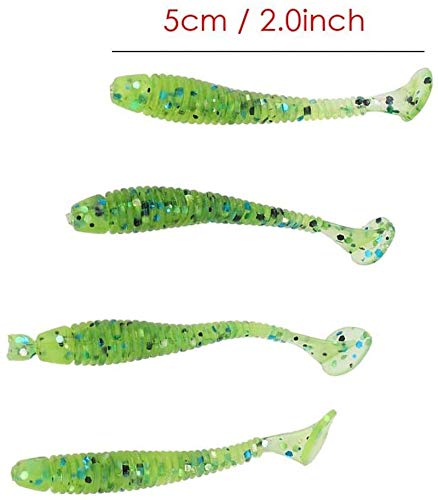 50 esche morbide da pesca da 5 cm, in plastica per verme a T, per esche da pesca Grub Shad, accessori per attrezzi (A)