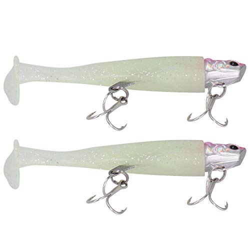 Esca per esche morbide, 2 pezzi in silicone durevole e esca per simulazione di pesca in acciaio inossidabile, teste di taglio curve luminose per pesca in mare Esca morbida con coda a T con doppio ganc