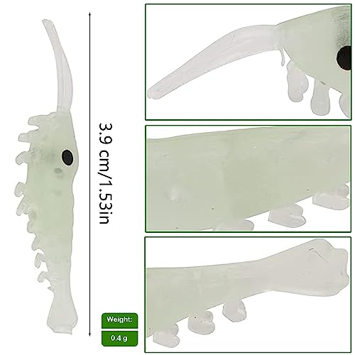 Esche bioniche luminose per gamberetti: i piccoli gamberetti sono realizzati in plastica di gomma di alta qualità, resistente, riutilizzabile e durevole, particolarmente resistente ai morsi. Lunghezza del gambero essiccato: 3,9 cm, peso totale: 0,4 g. Otterrai 100 esche per gamberetti.