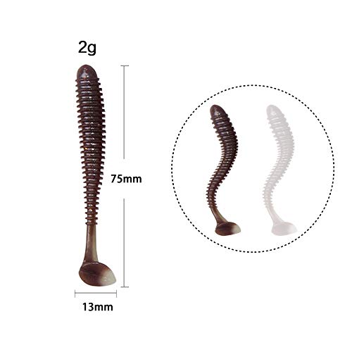 3.Caratteristiche: Morbido, può essere facilmente attaccato al gancio. Da appendere sul ami da pesca e saranno vividi in acqua. Strumento di pesca pratico per gli amanti della pesca.