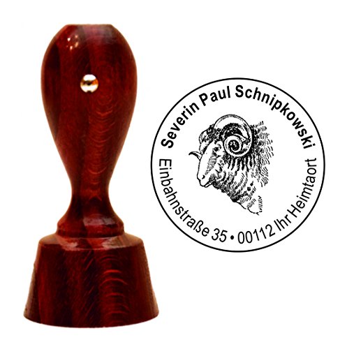 Esclusivo Indirizzo Timbro « Ariete » con suo Indirizzo rotondo in legno di mogano farbener timbro segno zodiacale astrologia