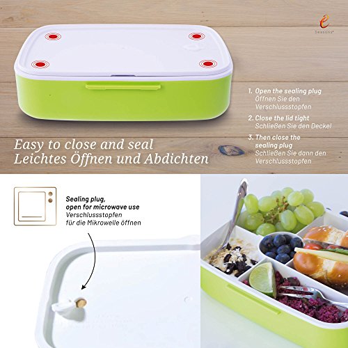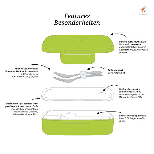 ESeasons Bento Lunch-Box a Prova di perdite 5 Scomparti Bianco e Verde in Acciaio Inox Posate BPA Gratuito