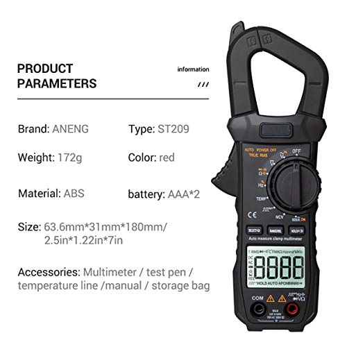 Esenlong Multimetro Digitale St209 Misuratore a Pinza 6000 Conteggi Auto Range True Rms Dc/AC Current Clamp Tester Voltmetro- Nero