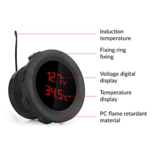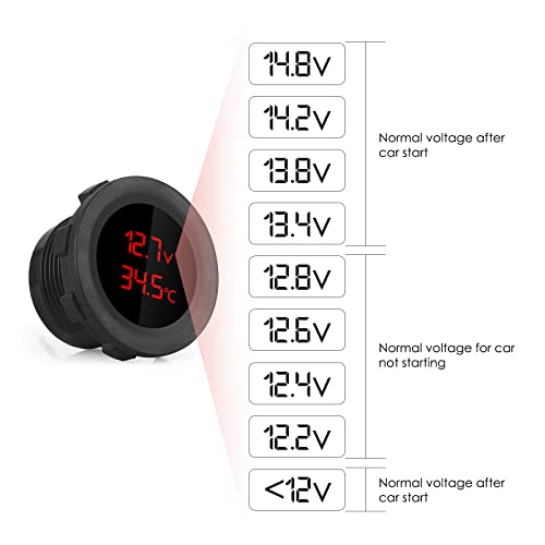 【Ampia applicazione】: il voltmetro termometro digitale ha un'ampia gamma di carica e può essere utilizzato in tutti i veicoli con tensione di ingresso di 12V.