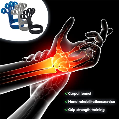 Esercitatore per Le Dita, 3 Pezzi Finger Trainer, Impugnatura regolabile per le dita, Allenatore per dita in silicone, Rafforzamento delle Dita Trainer, Per Esercizi muscolari (Nero, Blu, Grigio)
