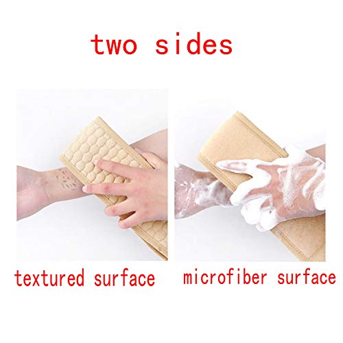 La cinghia per il lavaggio del corpo ha due lati, un lato offre una superficie ruvida che esfolia profondamente, e l'altro lato ha una superficie morbida e liscia in microfibra per pelli delicate.