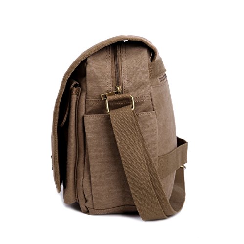 Eshow - borsa casual a tracolla, di tela, da uomo, zaino multifunzione per iPad, lavoro, business, shopping, scuola, uso quotidiano Brown02