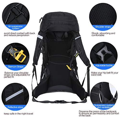 Eshow Zaino Unisex 50 Litri Impermeabile Leggero Copertina Antipioggia Trekking Outdoor Sport Alpinismo Escursionismo Campeggio Viaggio (Verde)