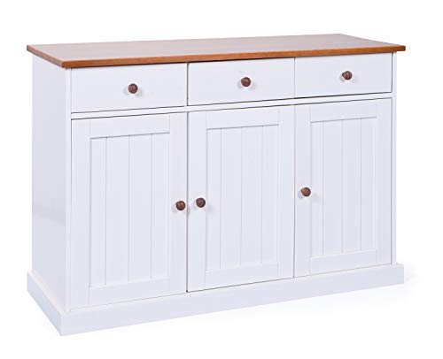 Esidra Credenza 3 Ante e 3 Cassetti, Legno, Bianco, 131x45x86 cm