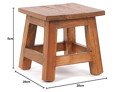 ESIGN DELIGHTS - Sgabello Palo, Stile rustico e Vintage, 27,5 x 26 x 26 cm (Altezza x Larghezza x profondità), Legno di mogano Riciclato