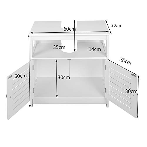 ESituro Armadietto Sottolavabo da Bagno Mobile a Terra con 2 Ante in Legno Bianco Mobiletto Sotto il Lavello SBP0023