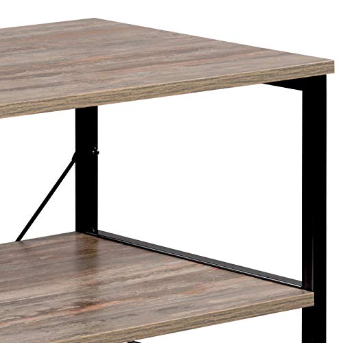 ESituro Scaffale da Cucina Porta Microonde Industriale con Ganci e 4 Ripiani, Scaffalatura in Legno e Metallo Portaoggetti 90x40x83,5cm Rovere SSTR0062