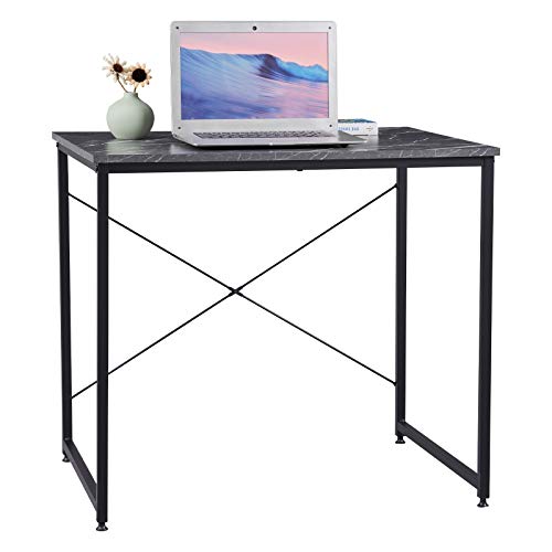 ESituro Scrivania per Ufficio, Scrivania per PC Computer in Legno e Metallo, Scrivania per Studio, Soggiorno, Cameretta, Stile Industriale Vintage, 80x60x70cm, Marmo Nero/Nero, SCD0157
