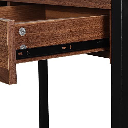 ESituro Scrivania da Ufficio in Legno Tavolo per PC con 2 Cassetti Scrivania Computer Salvaspazio per Cameretta Telaio in Metallo, Nero+Rovere Scuro, SCD0192