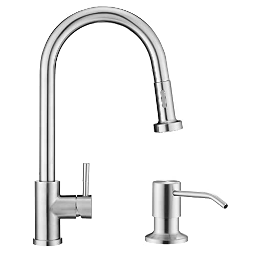ESLCLO Rubinetto Cucina con Doccetta Estraibile, Girevole a 360°, Alta Pressione, 304 Acciaio Inox Miscelatore Cucina, Dotato di Tubo 60cm, Con Dispenser di Sapone, Bianco