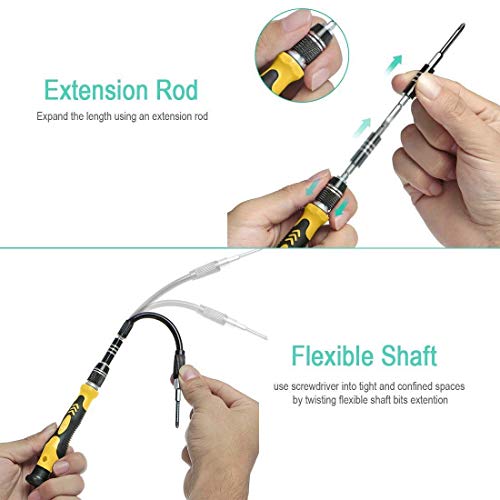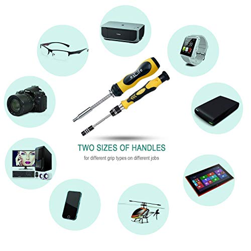 Manici di 2 misure: questo kit professionale per cacciavite viene fornito con 1 manico grande e 1 manico standard aggiuntivo per iPhone, iPad, computer portatile, smartphone, MacBook, PC, orologi, Xbox, occhiali, fotocamere e altri dispositivi elettronici.