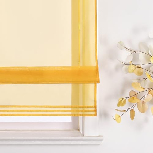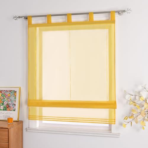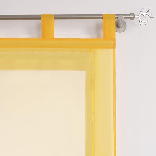 Eslir, tenda a pacchetto con passanti, per la cucina, trasparente, in voile moderno, 1 pezzo, 100% poliestere, giallo., BxH 100x155cm