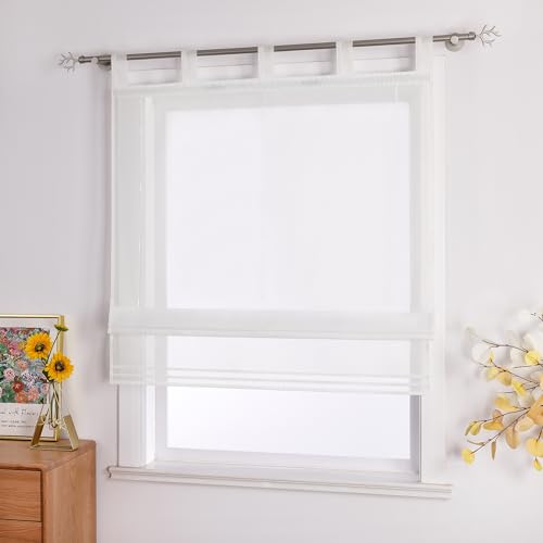 Eslir, tenda a pacchetto con passanti, per la cucina, trasparente, in voile moderno, 1 pezzo, 100% poliestere, beige., BxH 140x155cm