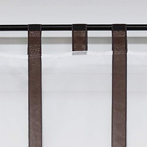 ESLIR Tenda a pacchetto con passanti, in voile, per cucina, trasparente, con passanti, colore marrone, 80 x 140 cm