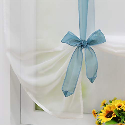 ESLIR Tenda a pacchetto con passanti, in voile, per cucina, trasparente, con passanti, colore blu, 60 x 140 cm
