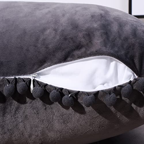 Eslohnt Federa Cuscino 40x60 Morbido di Velluto per Divano Copricuscini con Pon Pon 2 Pezzi per la Soggiorno e Camera da Letto Lavabile Grigio