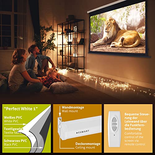 ESMART Economia EXT Schermo di tensione 200 x 113cm (90") | Formato 16:9 | Telecomando programmabile | Schermo del motore dello schermo di proiezione del proiettore elettrico per home cinema