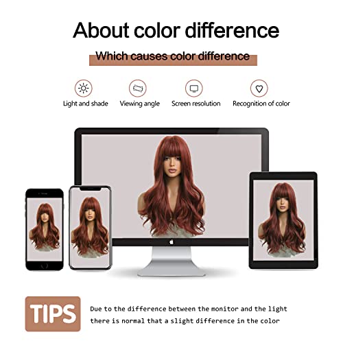Esmee 24 Inches Long Wavy Rosso Marrone Wigs for Women Natural Synthetic Hair Heat Resistant Wigs with Bangs for Daily Party Cosplay Use