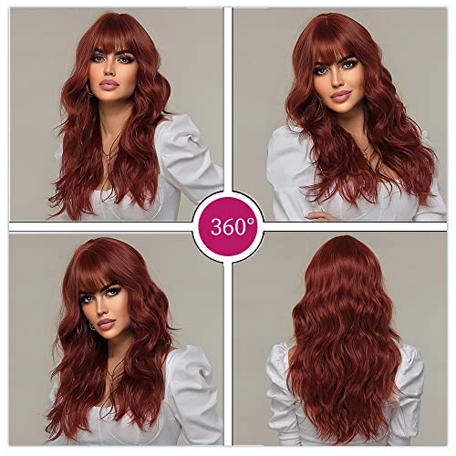 Esmee Parrucca Lunga Ondulata Rosso Rame con Frangia per le Donne Capelli Sintetici Naturali Borgogna Parrucche per Uso Quotidiano Partito Cosplay-22 Pollici