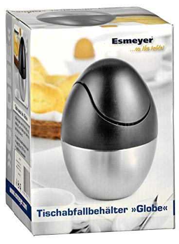 Esmeyer Swing - Pattumiera da tavolo in acciaio inox con coperchio basculante in plastica nera, acciaio inossidabile